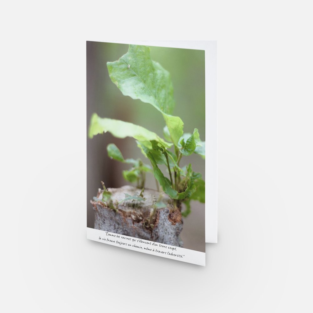 " Comme les racines qui s'élancent d'un tronc coupé, la vie trouve toujours un chemin, même à travers l'adversité. "